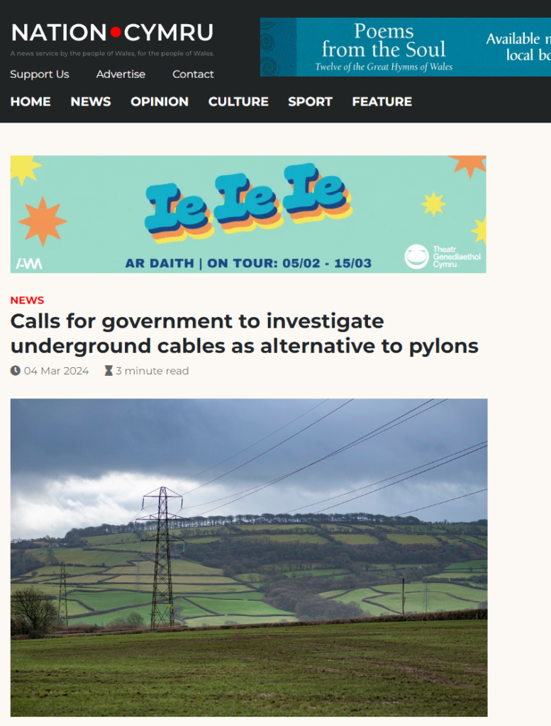 Nation Cymru: Calls for government to investigate underground cables as alternative to pylons
