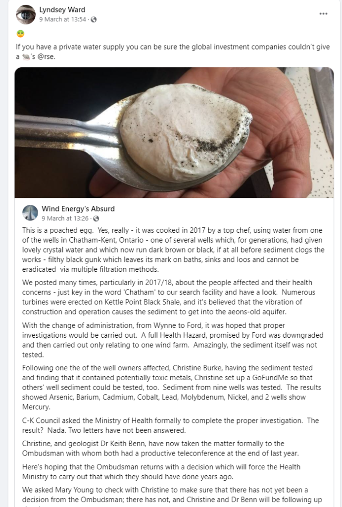 Facebook: Chatham-Kent, Ontario water pollution caused by wind turbines