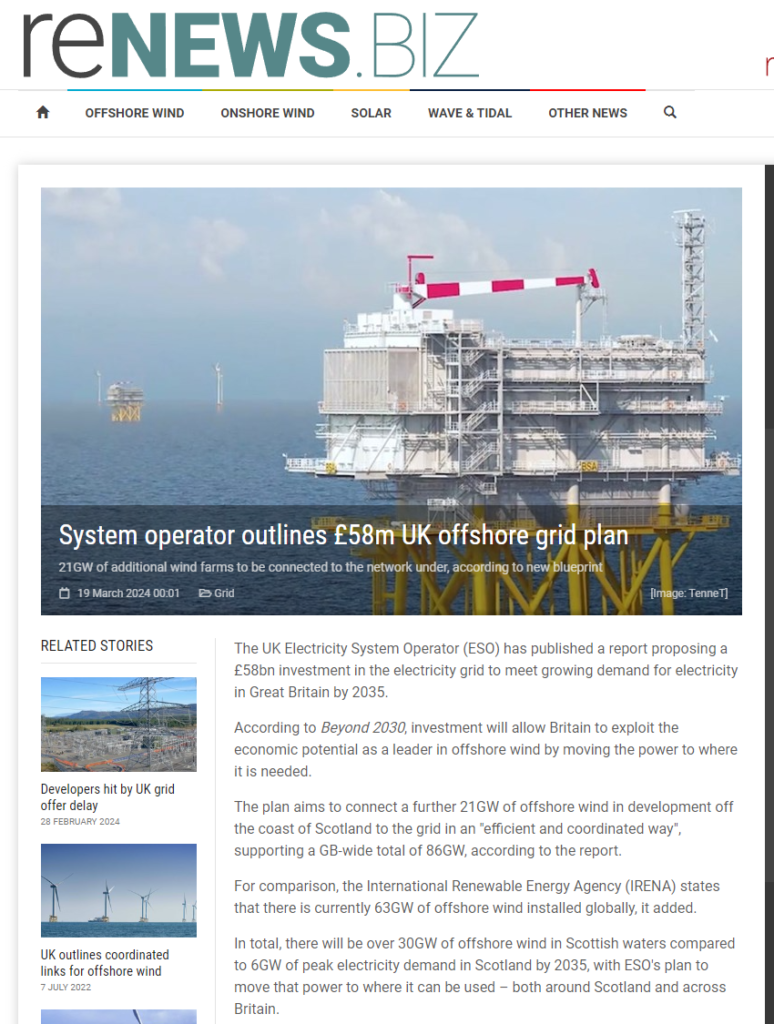 reNews.biz: System operator outlines £58m UK offshore grid plan