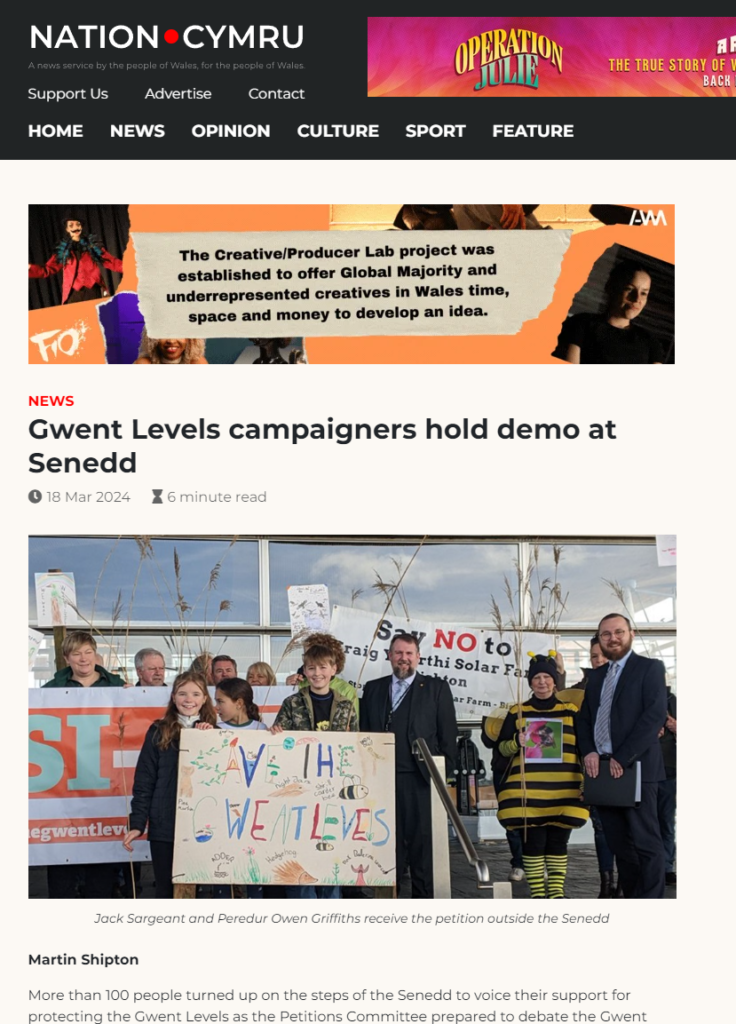 Nation Cymru: Gwent Levels campaigners hold demo at Senedd