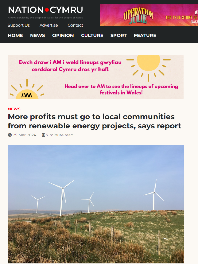 Nation Cymru: More profits must go to local communities from renewable energy projects, says report